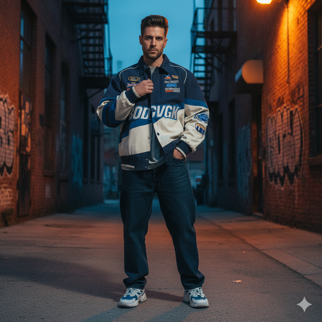 Rev up your style with our Patchwork Stadium Motorcycle Jacket. 🏍️This bold jacket features a unique patchwork design, blending the classic motorcycle silhouette with sporty stadium influences.
