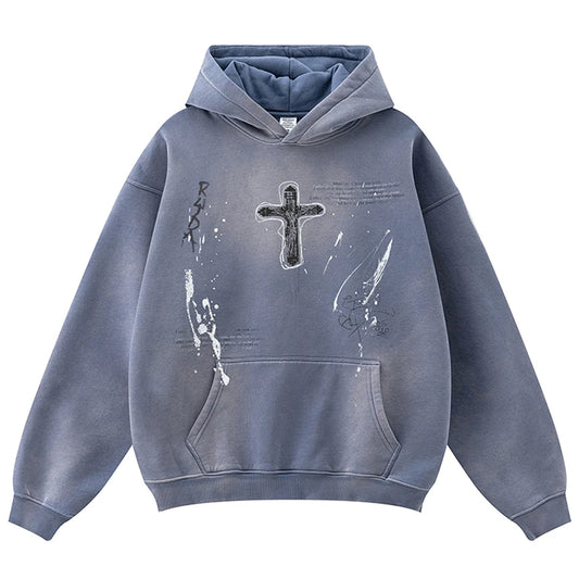 Haruja - Black Patchwork Vintage Hoodie
