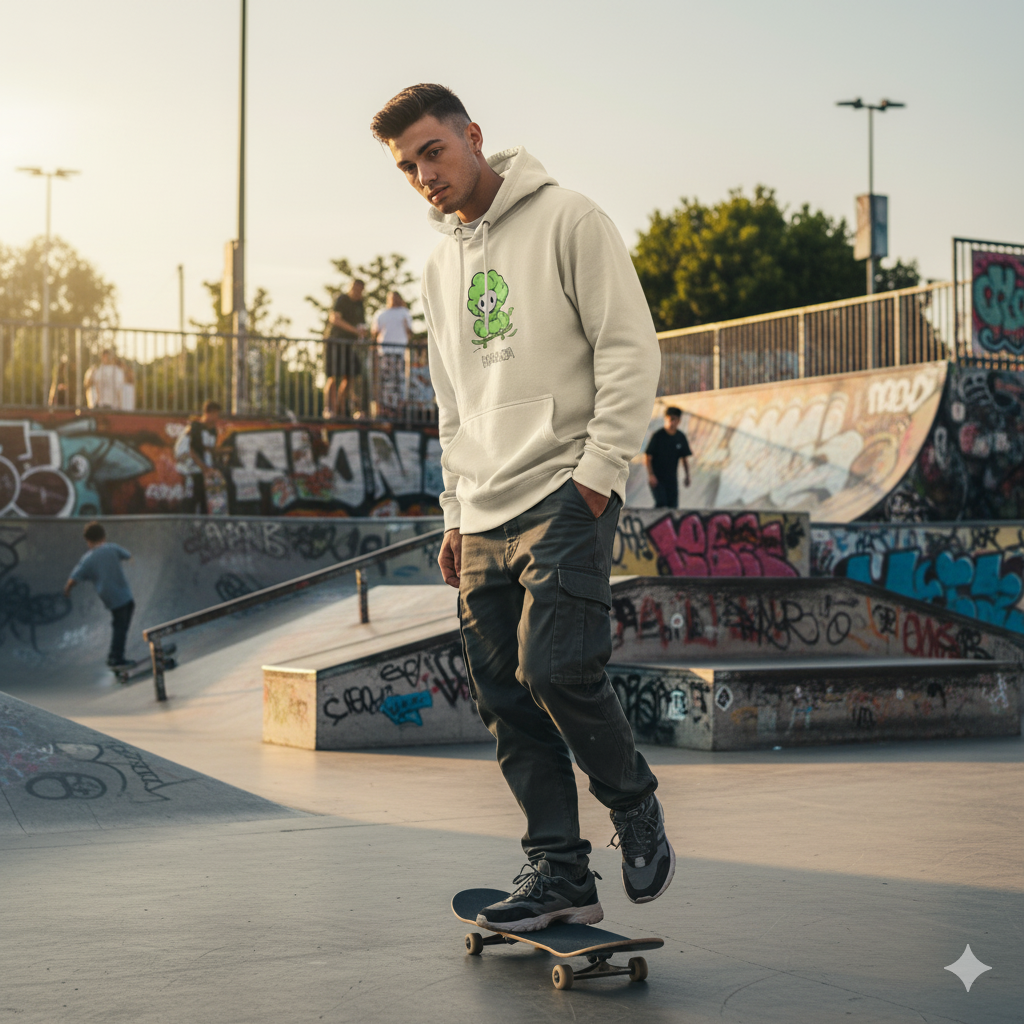 The Green Gas Hoodie by Haruja blends post-apocalyptic vibes with everyday wear. Cut from heavyweight cotton with a soft fleece interior, it’s oversized, unbothered, and built to last—even if nothing else does.